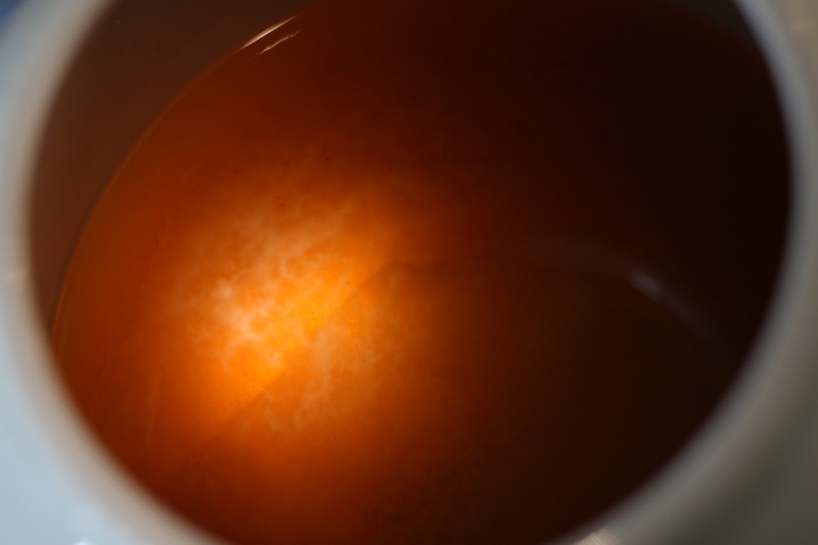 Here is the start of the new SCOBY, a thin film on the surface of the tea.