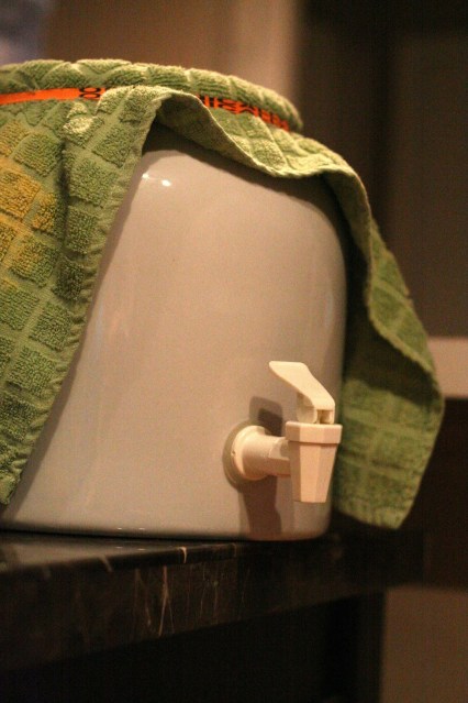 If you notice in the first photo, I have the spigot hanging over the table for easy access later.