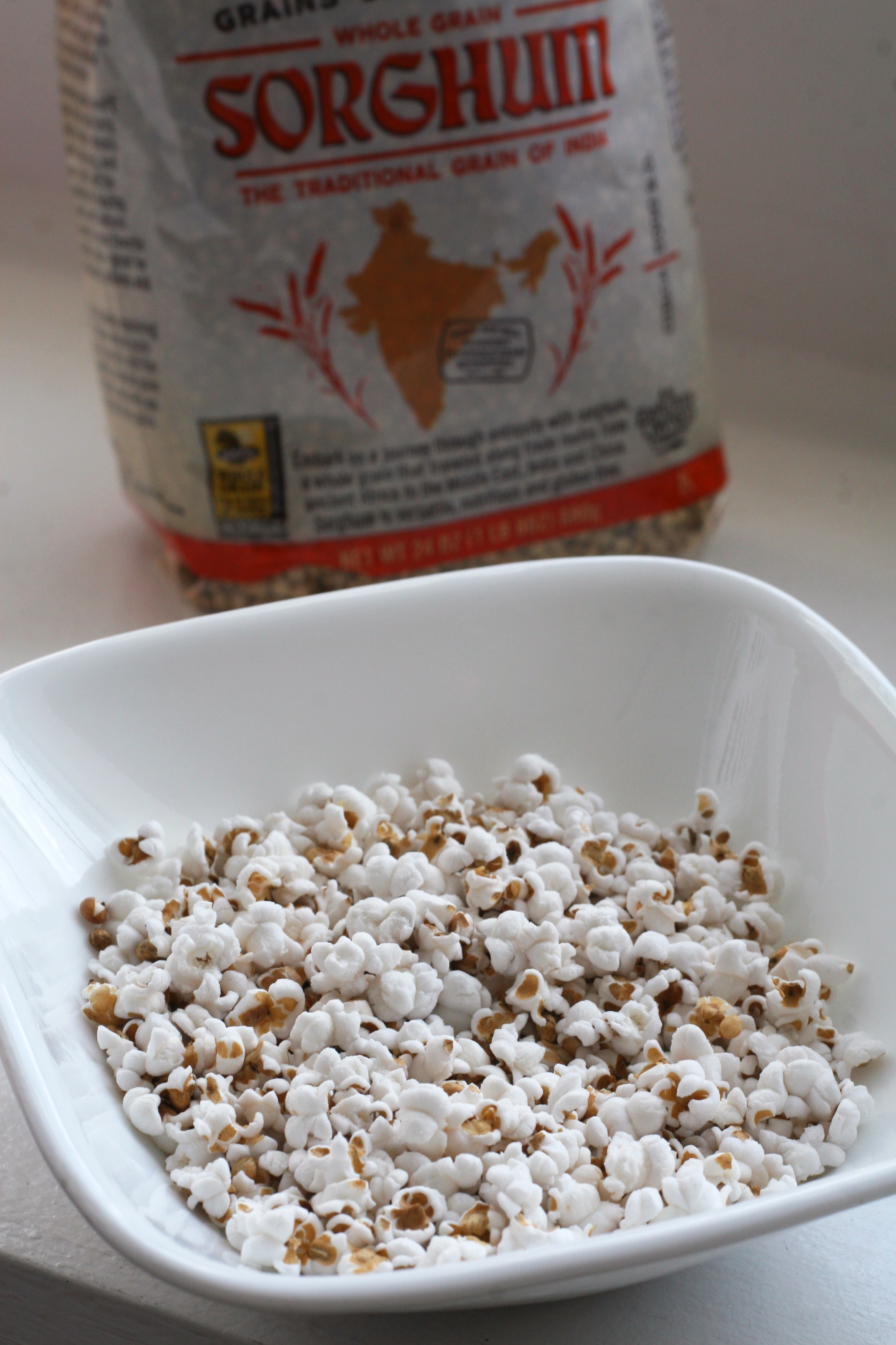 Directions Place 1/4-1/2 cup of Sorghum in a paper bag, folding the end so grains are enclosed. Microwave on high for 2-3 min, until there is around 3-5 seconds between large pop sounds. Cool for a couple minutes, and season or oil to your liking!